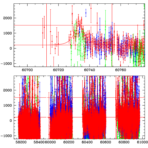 ● CTIO ● SAAO ● SSO ● Largest local dchi2 value (same as site of EVENT name) ● Local dchi2 is less than 0.05 times global dchi2 KMTA02_I.diapl KMTC02_I.diapl KMTS02_I.diapl gzipped tar file for all DIA data | |