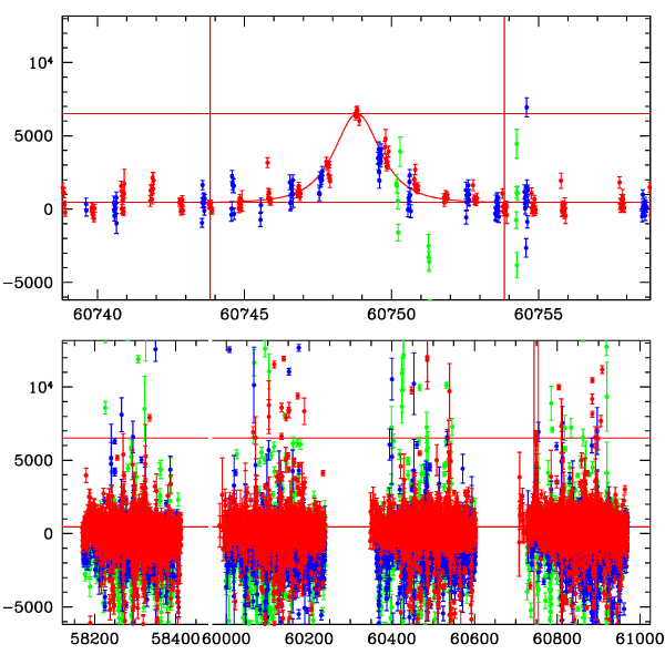 ● CTIO ● SAAO ● SSO ● Largest local dchi2 value (same as site of EVENT name) ● Local dchi2 is less than 0.05 times global dchi2 KMTA02_I.diapl KMTC02_I.diapl KMTS02_I.diapl gzipped tar file for all DIA data | |