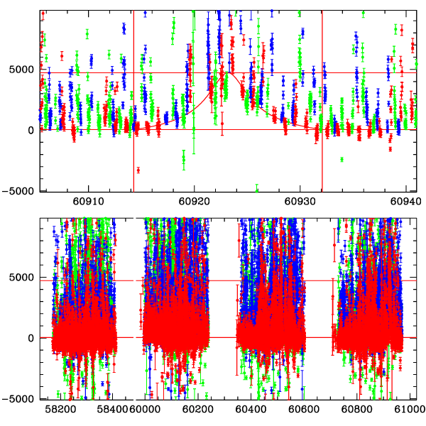 ● CTIO ● SAAO ● SSO ● Largest local dchi2 value (same as site of EVENT name) ● Local dchi2 is less than 0.05 times global dchi2 KMTA02_I.diapl KMTC02_I.diapl KMTS02_I.diapl gzipped tar file for all DIA data | |