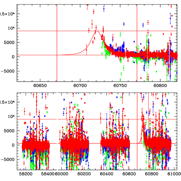 ● CTIO ● SAAO ● SSO ● Largest local dchi2 value (same as site of EVENT name) ● Local dchi2 is less than 0.05 times global dchi2 KMTA02_I.diapl KMTC02_I.diapl KMTS02_I.diapl gzipped tar file for all DIA data | |