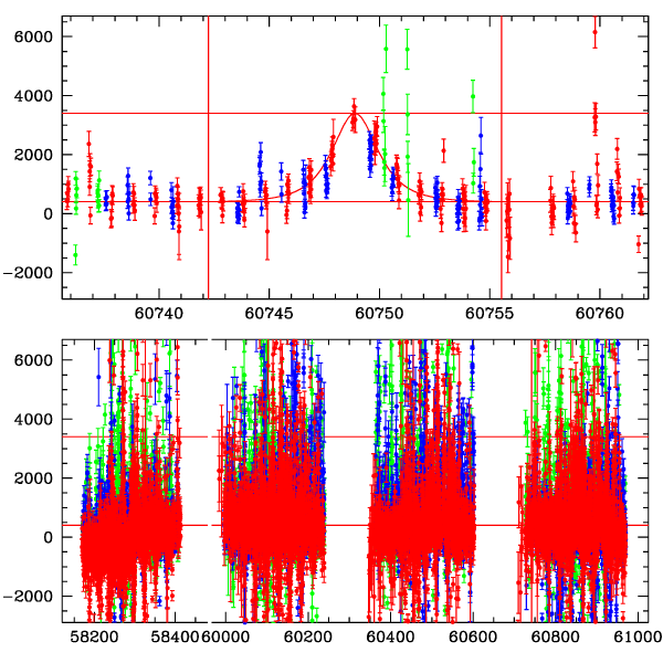 ● CTIO ● SAAO ● SSO ● Largest local dchi2 value (same as site of EVENT name) ● Local dchi2 is less than 0.05 times global dchi2 KMTA02_I.diapl KMTC02_I.diapl KMTS02_I.diapl gzipped tar file for all DIA data | |