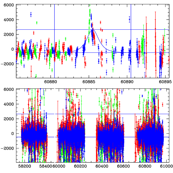 ● CTIO ● SAAO ● SSO ● Largest local dchi2 value (same as site of EVENT name) ● Local dchi2 is less than 0.05 times global dchi2 KMTA02_I.diapl KMTC02_I.diapl KMTS02_I.diapl gzipped tar file for all DIA data | |