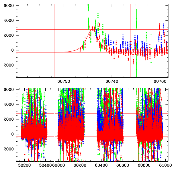 ● CTIO ● SAAO ● SSO ● Largest local dchi2 value (same as site of EVENT name) ● Local dchi2 is less than 0.05 times global dchi2 KMTA03_I.diapl KMTC03_I.diapl KMTS03_I.diapl gzipped tar file for all DIA data | |