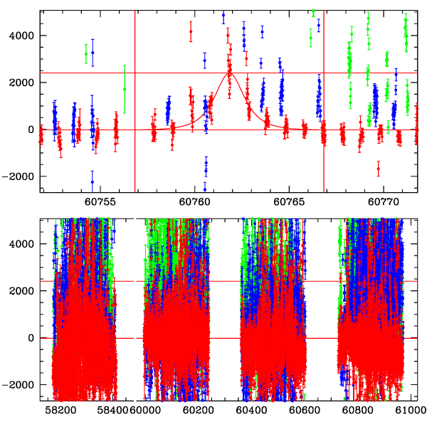 ● CTIO ● SAAO ● SSO ● Largest local dchi2 value (same as site of EVENT name) ● Local dchi2 is less than 0.05 times global dchi2 KMTA03_I.diapl KMTC03_I.diapl KMTS03_I.diapl gzipped tar file for all DIA data | |