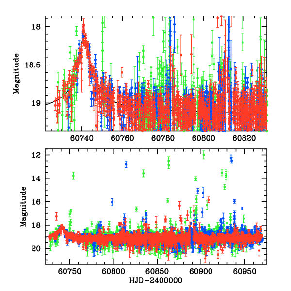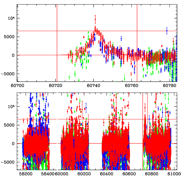 ● CTIO ● SAAO ● SSO ● Largest local dchi2 value (same as site of EVENT name) ● Local dchi2 is less than 0.05 times global dchi2 KMTA03_I.diapl KMTC03_I.diapl KMTS03_I.diapl gzipped tar file for all DIA data | |
