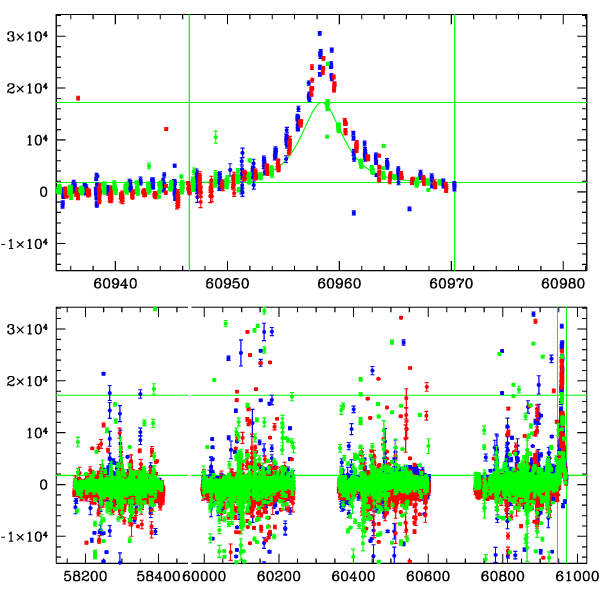 ● CTIO ● SAAO ● SSO ● Largest local dchi2 value (same as site of EVENT name) ● Local dchi2 is less than 0.05 times global dchi2 KMTA03_I.diapl KMTC03_I.diapl KMTS03_I.diapl gzipped tar file for all DIA data | |
