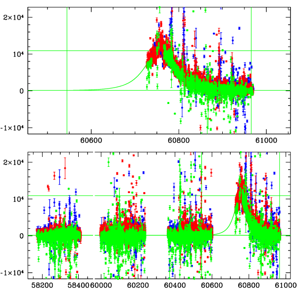 ● CTIO ● SAAO ● SSO ● Largest local dchi2 value (same as site of EVENT name) ● Local dchi2 is less than 0.05 times global dchi2 KMTA03_I.diapl KMTC03_I.diapl KMTS03_I.diapl gzipped tar file for all DIA data | |