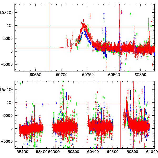 ● CTIO ● SAAO ● SSO ● Largest local dchi2 value (same as site of EVENT name) ● Local dchi2 is less than 0.05 times global dchi2 KMTA04_I.diapl KMTC04_I.diapl KMTS04_I.diapl gzipped tar file for all DIA data | |