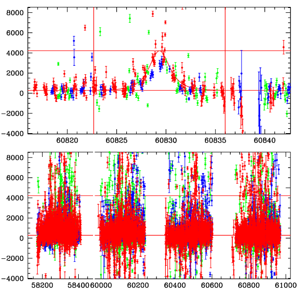 ● CTIO ● SAAO ● SSO ● Largest local dchi2 value (same as site of EVENT name) ● Local dchi2 is less than 0.05 times global dchi2 KMTA04_I.diapl KMTC04_I.diapl KMTS04_I.diapl gzipped tar file for all DIA data | |