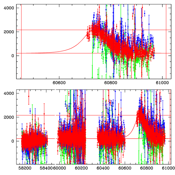 ● CTIO ● SAAO ● SSO ● Largest local dchi2 value (same as site of EVENT name) ● Local dchi2 is less than 0.05 times global dchi2 KMTA11_I.diapl KMTC11_I.diapl KMTS11_I.diapl gzipped tar file for all DIA data | |