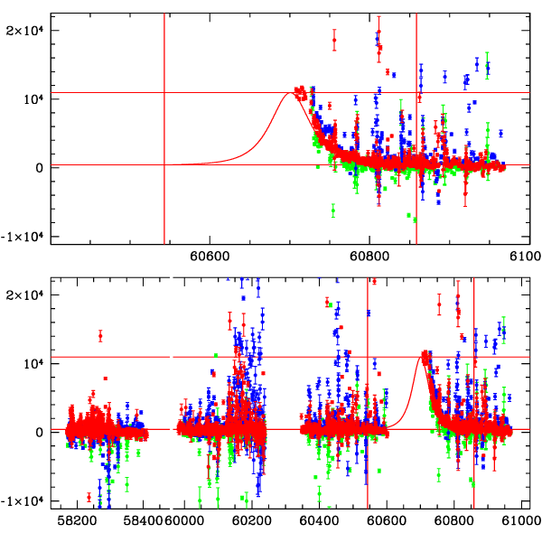 ● CTIO ● SAAO ● SSO ● Largest local dchi2 value (same as site of EVENT name) ● Local dchi2 is less than 0.05 times global dchi2 KMTA11_I.diapl KMTC11_I.diapl KMTS11_I.diapl gzipped tar file for all DIA data | |