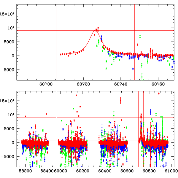 ● CTIO ● SAAO ● SSO ● Largest local dchi2 value (same as site of EVENT name) ● Local dchi2 is less than 0.05 times global dchi2 KMTA14_I.diapl KMTC14_I.diapl KMTS14_I.diapl gzipped tar file for all DIA data | |