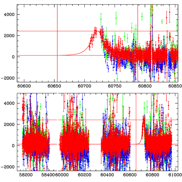 ● CTIO ● SAAO ● SSO ● Largest local dchi2 value (same as site of EVENT name) ● Local dchi2 is less than 0.05 times global dchi2 KMTA14_I.diapl KMTC14_I.diapl KMTS14_I.diapl gzipped tar file for all DIA data | |