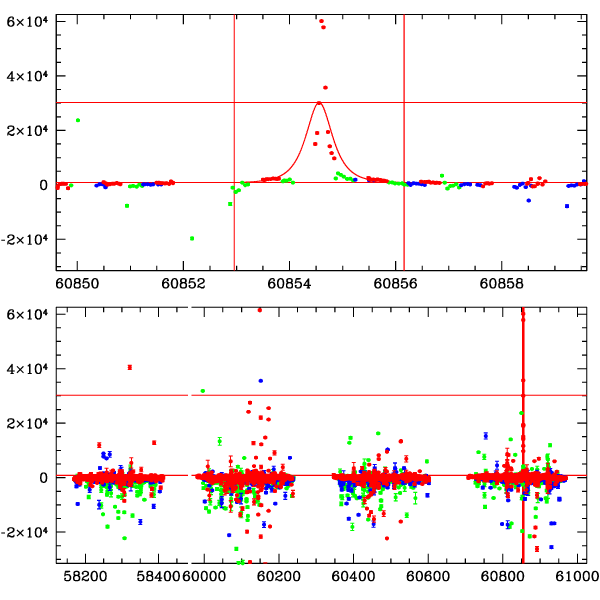 ● CTIO ● SAAO ● SSO ● Largest local dchi2 value (same as site of EVENT name) ● Local dchi2 is less than 0.05 times global dchi2 KMTA14_I.diapl KMTC14_I.diapl KMTS14_I.diapl gzipped tar file for all DIA data | |