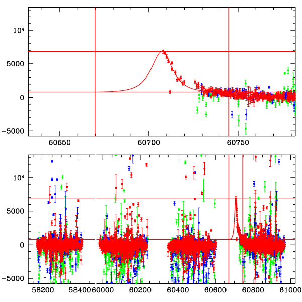 ● CTIO ● SAAO ● SSO ● Largest local dchi2 value (same as site of EVENT name) ● Local dchi2 is less than 0.05 times global dchi2 KMTA14_I.diapl KMTC14_I.diapl KMTS14_I.diapl gzipped tar file for all DIA data | |
