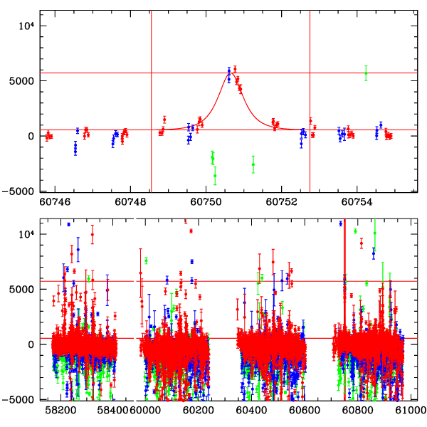 ● CTIO ● SAAO ● SSO ● Largest local dchi2 value (same as site of EVENT name) ● Local dchi2 is less than 0.05 times global dchi2 KMTA18_I.diapl KMTC18_I.diapl KMTS18_I.diapl gzipped tar file for all DIA data | |