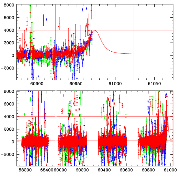● CTIO ● SAAO ● SSO ● Largest local dchi2 value (same as site of EVENT name) ● Local dchi2 is less than 0.05 times global dchi2 KMTA18_I.diapl KMTC18_I.diapl KMTS18_I.diapl gzipped tar file for all DIA data | |