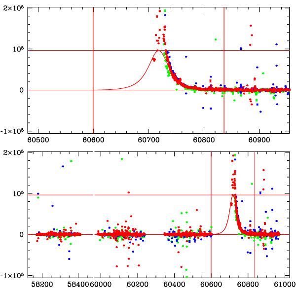 ● CTIO ● SAAO ● SSO ● Largest local dchi2 value (same as site of EVENT name) ● Local dchi2 is less than 0.05 times global dchi2 KMTA19_I.diapl KMTC19_I.diapl KMTS19_I.diapl gzipped tar file for all DIA data | |