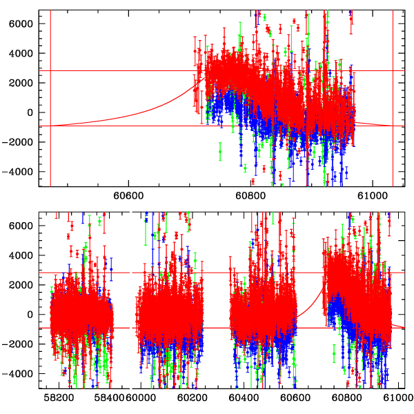 ● CTIO ● SAAO ● SSO ● Largest local dchi2 value (same as site of EVENT name) ● Local dchi2 is less than 0.05 times global dchi2 KMTA19_I.diapl KMTC19_I.diapl KMTS19_I.diapl gzipped tar file for all DIA data | |