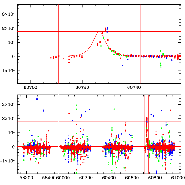 ● CTIO ● SAAO ● SSO ● Largest local dchi2 value (same as site of EVENT name) ● Local dchi2 is less than 0.05 times global dchi2 KMTA19_I.diapl KMTC19_I.diapl KMTS19_I.diapl gzipped tar file for all DIA data | |