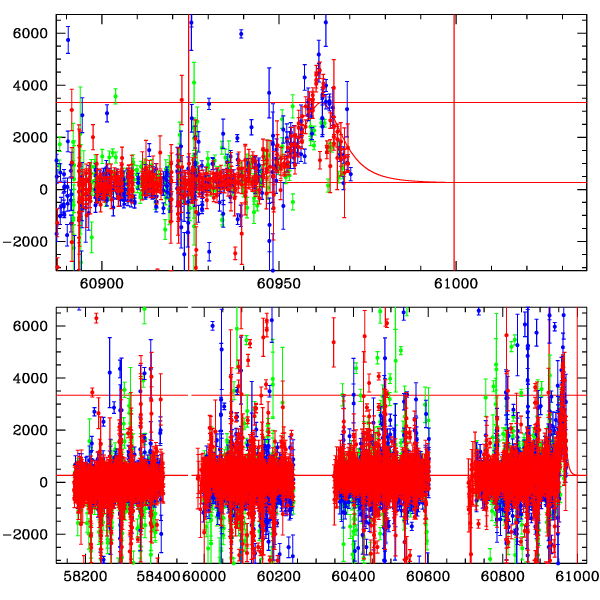 ● CTIO ● SAAO ● SSO ● Largest local dchi2 value (same as site of EVENT name) ● Local dchi2 is less than 0.05 times global dchi2 KMTA19_I.diapl KMTC19_I.diapl KMTS19_I.diapl gzipped tar file for all DIA data | |