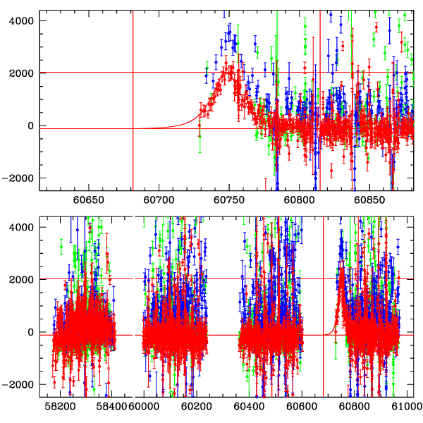 ● CTIO ● SAAO ● SSO ● Largest local dchi2 value (same as site of EVENT name) ● Local dchi2 is less than 0.05 times global dchi2 KMTA21_I.diapl KMTC21_I.diapl KMTS21_I.diapl gzipped tar file for all DIA data | |