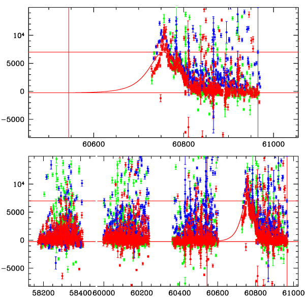 ● CTIO ● SAAO ● SSO ● Largest local dchi2 value (same as site of EVENT name) ● Local dchi2 is less than 0.05 times global dchi2 KMTA21_I.diapl KMTC21_I.diapl KMTS21_I.diapl gzipped tar file for all DIA data | |