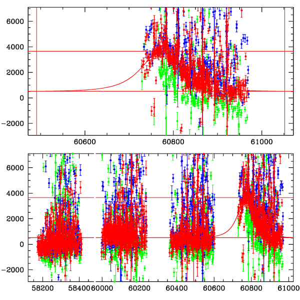 ● CTIO ● SAAO ● SSO ● Largest local dchi2 value (same as site of EVENT name) ● Local dchi2 is less than 0.05 times global dchi2 KMTA21_I.diapl KMTC21_I.diapl KMTS21_I.diapl gzipped tar file for all DIA data | |