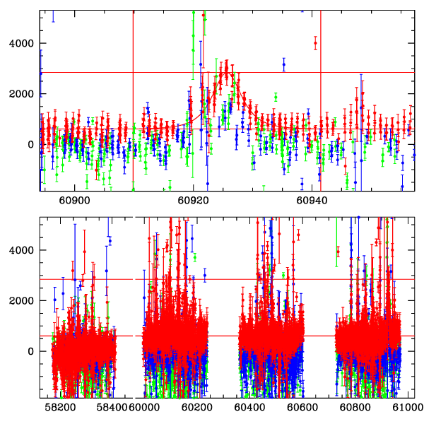 ● CTIO ● SAAO ● SSO ● Largest local dchi2 value (same as site of EVENT name) ● Local dchi2 is less than 0.05 times global dchi2 KMTA22_I.diapl KMTC22_I.diapl KMTS22_I.diapl gzipped tar file for all DIA data | |