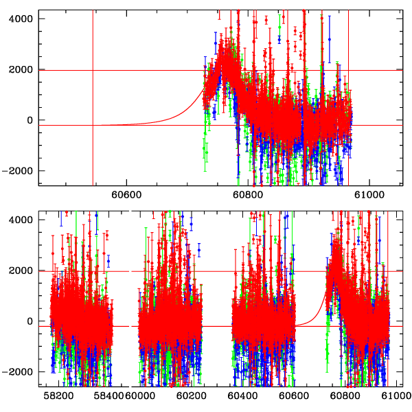 ● CTIO ● SAAO ● SSO ● Largest local dchi2 value (same as site of EVENT name) ● Local dchi2 is less than 0.05 times global dchi2 KMTA22_I.diapl KMTC22_I.diapl KMTS22_I.diapl gzipped tar file for all DIA data | |