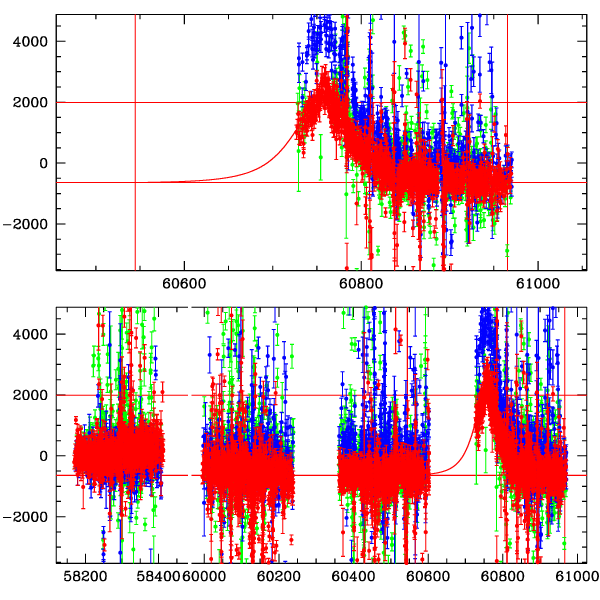● CTIO ● SAAO ● SSO ● Largest local dchi2 value (same as site of EVENT name) ● Local dchi2 is less than 0.05 times global dchi2 KMTA22_I.diapl KMTC22_I.diapl KMTS22_I.diapl gzipped tar file for all DIA data | |