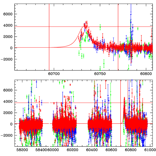 ● CTIO ● SAAO ● SSO ● Largest local dchi2 value (same as site of EVENT name) ● Local dchi2 is less than 0.05 times global dchi2 KMTA22_I.diapl KMTC22_I.diapl KMTS22_I.diapl gzipped tar file for all DIA data | |