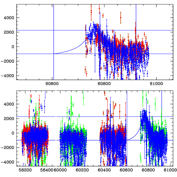 ● CTIO ● SAAO ● SSO ● Largest local dchi2 value (same as site of EVENT name) ● Local dchi2 is less than 0.05 times global dchi2 KMTA22_I.diapl KMTC22_I.diapl KMTS22_I.diapl gzipped tar file for all DIA data | |