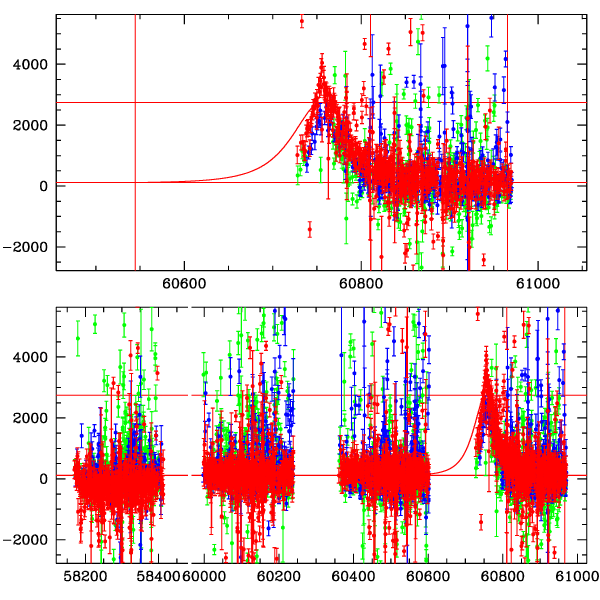 ● CTIO ● SAAO ● SSO ● Largest local dchi2 value (same as site of EVENT name) ● Local dchi2 is less than 0.05 times global dchi2 KMTA31_I.diapl KMTC31_I.diapl KMTS31_I.diapl gzipped tar file for all DIA data | |