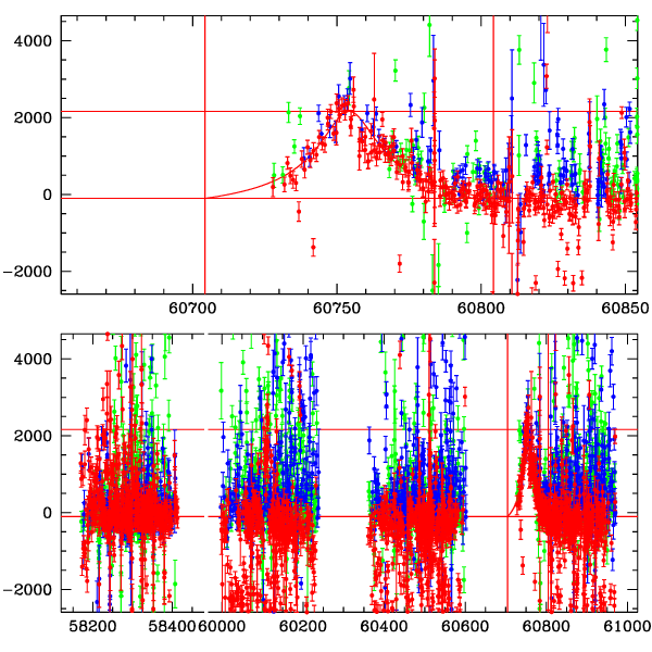 ● CTIO ● SAAO ● SSO ● Largest local dchi2 value (same as site of EVENT name) ● Local dchi2 is less than 0.05 times global dchi2 KMTA31_I.diapl KMTC31_I.diapl KMTS31_I.diapl gzipped tar file for all DIA data | |