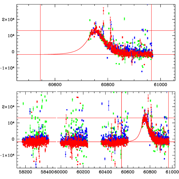 ● CTIO ● SAAO ● SSO ● Largest local dchi2 value (same as site of EVENT name) ● Local dchi2 is less than 0.05 times global dchi2 KMTA32_I.diapl KMTC32_I.diapl KMTS32_I.diapl gzipped tar file for all DIA data | |
