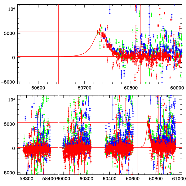 ● CTIO ● SAAO ● SSO ● Largest local dchi2 value (same as site of EVENT name) ● Local dchi2 is less than 0.05 times global dchi2 KMTA32_I.diapl KMTC32_I.diapl KMTS32_I.diapl gzipped tar file for all DIA data | |