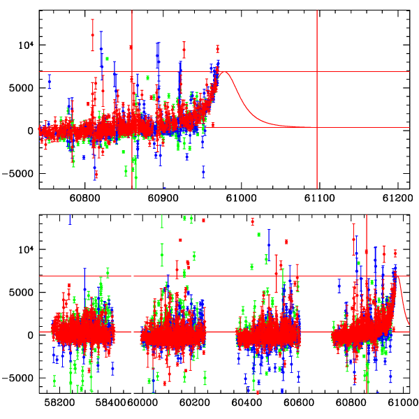 ● CTIO ● SAAO ● SSO ● Largest local dchi2 value (same as site of EVENT name) ● Local dchi2 is less than 0.05 times global dchi2 KMTA32_I.diapl KMTC32_I.diapl KMTS32_I.diapl gzipped tar file for all DIA data | |