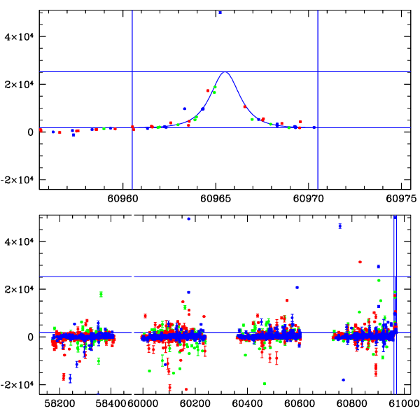 ● CTIO ● SAAO ● SSO ● Largest local dchi2 value (same as site of EVENT name) ● Local dchi2 is less than 0.05 times global dchi2 KMTA32_I.diapl KMTC32_I.diapl KMTS32_I.diapl gzipped tar file for all DIA data | |