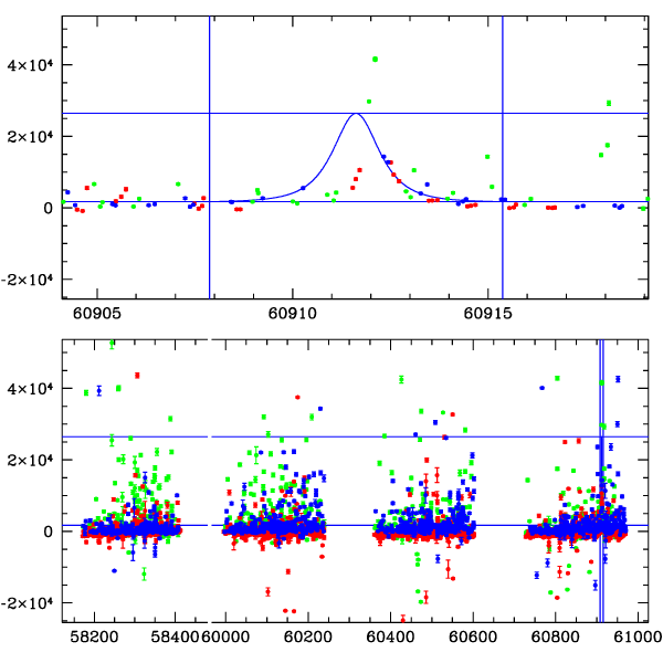 ● CTIO ● SAAO ● SSO ● Largest local dchi2 value (same as site of EVENT name) ● Local dchi2 is less than 0.05 times global dchi2 KMTA32_I.diapl KMTC32_I.diapl KMTS32_I.diapl gzipped tar file for all DIA data | |