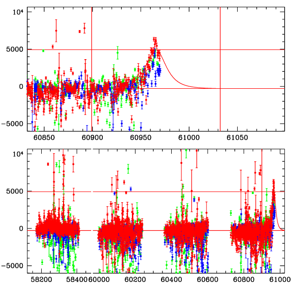 ● CTIO ● SAAO ● SSO ● Largest local dchi2 value (same as site of EVENT name) ● Local dchi2 is less than 0.05 times global dchi2 KMTA32_I.diapl KMTC32_I.diapl KMTS32_I.diapl gzipped tar file for all DIA data | |