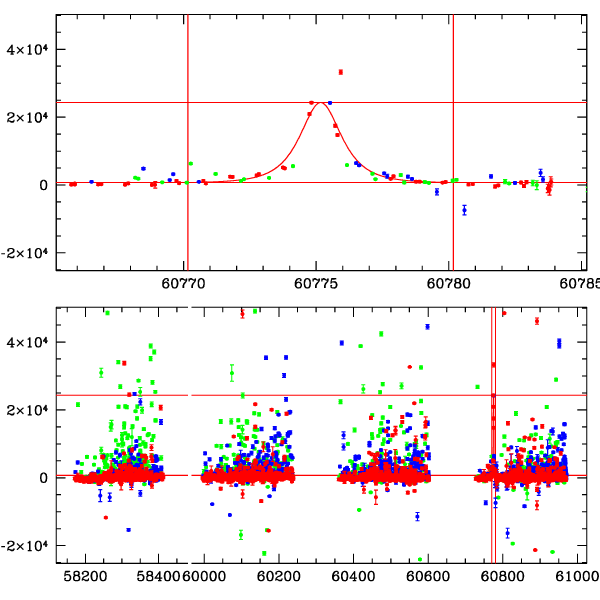 ● CTIO ● SAAO ● SSO ● Largest local dchi2 value (same as site of EVENT name) ● Local dchi2 is less than 0.05 times global dchi2 KMTA33_I.diapl KMTC33_I.diapl KMTS33_I.diapl gzipped tar file for all DIA data | |