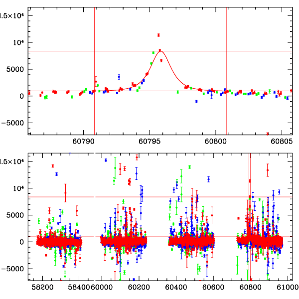 ● CTIO ● SAAO ● SSO ● Largest local dchi2 value (same as site of EVENT name) ● Local dchi2 is less than 0.05 times global dchi2 KMTA34_I.diapl KMTC34_I.diapl KMTS34_I.diapl gzipped tar file for all DIA data | |