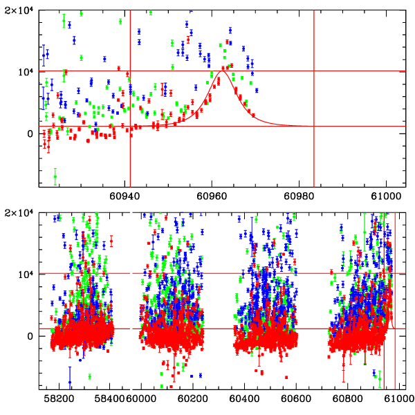 ● CTIO ● SAAO ● SSO ● Largest local dchi2 value (same as site of EVENT name) ● Local dchi2 is less than 0.05 times global dchi2 KMTA35_I.diapl KMTC35_I.diapl KMTS35_I.diapl gzipped tar file for all DIA data | |