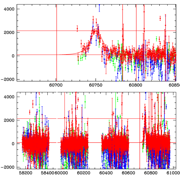 ● CTIO ● SAAO ● SSO ● Largest local dchi2 value (same as site of EVENT name) ● Local dchi2 is less than 0.05 times global dchi2 KMTA35_I.diapl KMTC35_I.diapl KMTS35_I.diapl gzipped tar file for all DIA data | |