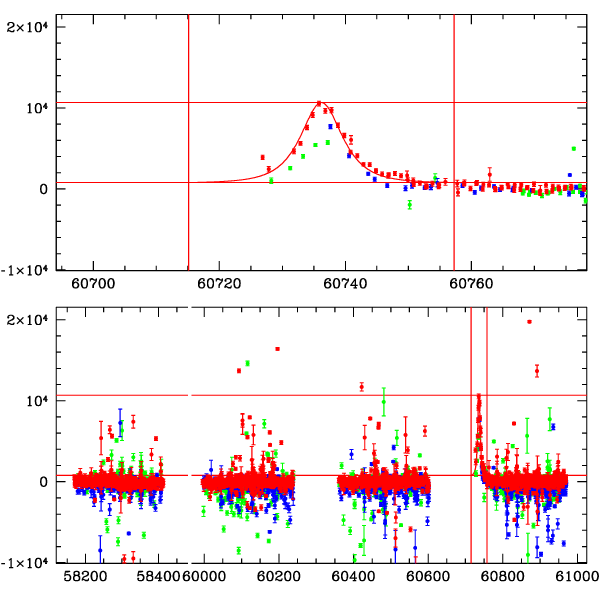 ● CTIO ● SAAO ● SSO ● Largest local dchi2 value (same as site of EVENT name) ● Local dchi2 is less than 0.05 times global dchi2 KMTA35_I.diapl KMTC35_I.diapl KMTS35_I.diapl gzipped tar file for all DIA data | |