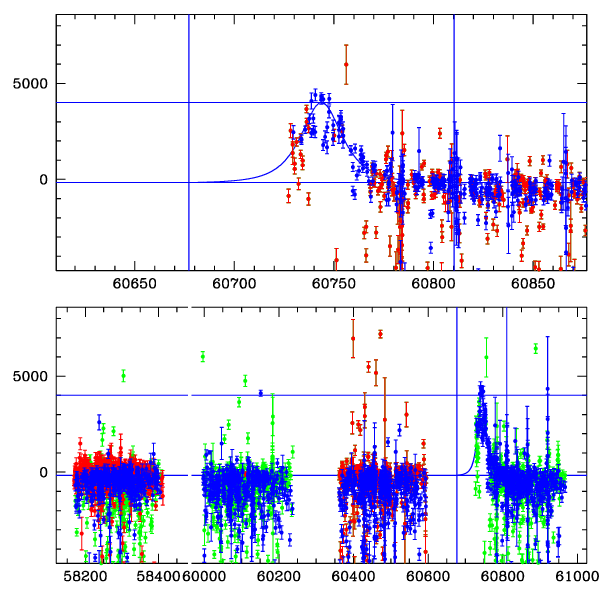 ● CTIO ● SAAO ● SSO ● Largest local dchi2 value (same as site of EVENT name) ● Local dchi2 is less than 0.05 times global dchi2 KMTA37_I.diapl KMTC37_I.diapl KMTS37_I.diapl gzipped tar file for all DIA data | |