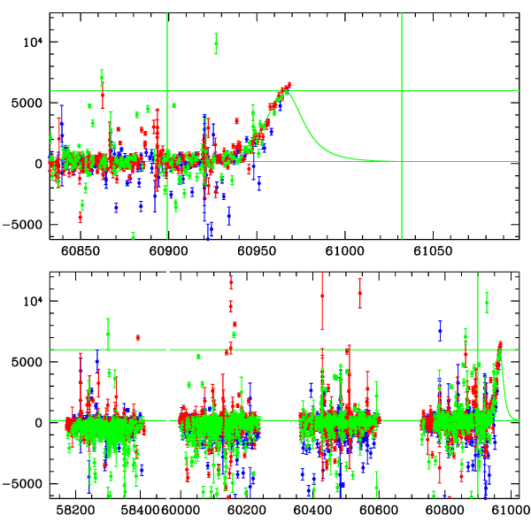 ● CTIO ● SAAO ● SSO ● Largest local dchi2 value (same as site of EVENT name) ● Local dchi2 is less than 0.05 times global dchi2 KMTA38_I.diapl KMTC38_I.diapl KMTS38_I.diapl gzipped tar file for all DIA data | |