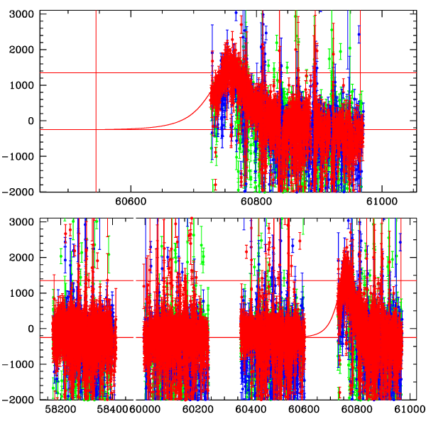 ● CTIO ● SAAO ● SSO ● Largest local dchi2 value (same as site of EVENT name) ● Local dchi2 is less than 0.05 times global dchi2 KMTA41_I.diapl KMTC41_I.diapl KMTS41_I.diapl gzipped tar file for all DIA data | |