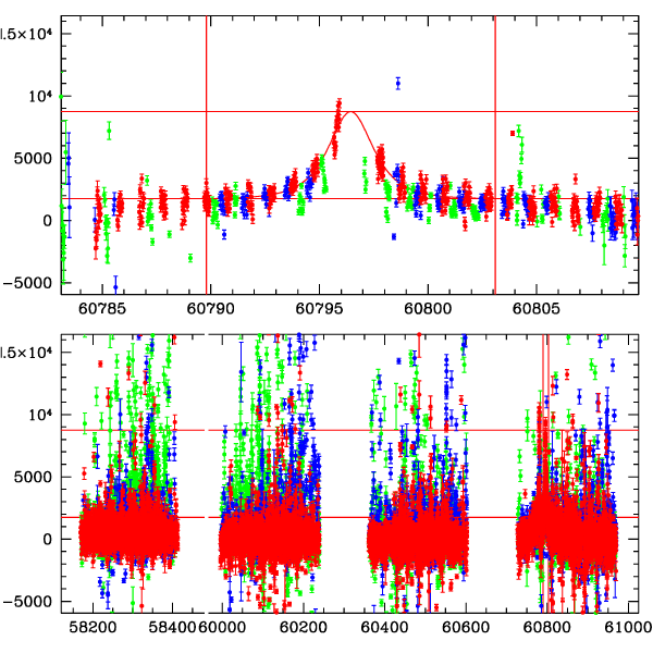 ● CTIO ● SAAO ● SSO ● Largest local dchi2 value (same as site of EVENT name) ● Local dchi2 is less than 0.05 times global dchi2 KMTA41_I.diapl KMTC41_I.diapl KMTS41_I.diapl gzipped tar file for all DIA data | |
